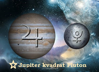 I tako kada se planeta širenja i ekspanzije (Jupiter) nađe u kvadratu sa planetom transformacije (Pluton) neke promene su izvesne, one mogu biti velike (Jupiter). Do promena se dolazi akcijom, borbom, negde nervozom, nemirom i napetošću...Jupiter energijom retrogradnosti vraća nešto iz prošlosti, nešto nerešeno, nedovršeno...Revidiraju se neki naši ideali, uverenja, vera u nekog ili nešto!!! Jupiter uvek proširi ono što zatekne...i dobro i loše. Može doći do eskalacije (Jupiter) nekih mračnih strana Plutona! Zbog energije kvadrata mnogima se neće svideti promene koje Pluton donosi...